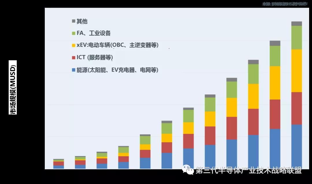 SiC(碳化硅)作為第三代半導體,以耐高壓、高溫和高頻,在高性能功率半導體上顯出優(yōu)勢。在應用中,在光伏和服務(wù)器市場(chǎng)最大,正處于發(fā)展中的市場(chǎng)是xEV(電動(dòng)與混動(dòng)汽車(chē))。隨著(zhù)SiC產(chǎn)品特性越做越好,在需要更高電壓的鐵路和風(fēng)電上將會(huì )得到更多的應用。
