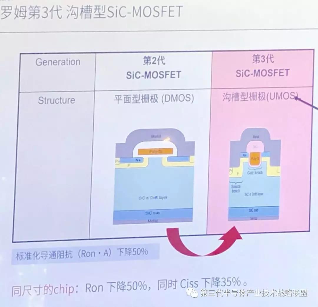 羅姆在2000年左右開(kāi)始投資SiC。為了實(shí)現一條龍生產(chǎn)策略,在2009年收購了德國晶圓廠(chǎng)SiCrystal公司,該公司主要做SiC柱、SiC襯底。之后在2010年時(shí)羅姆實(shí)現了SiC肖特基的量產(chǎn),可謂日本第一家量產(chǎn)的公司,在全球是第四家。2010年底,羅姆量產(chǎn)了SiC MOSFET,堪稱(chēng)全球第一家量產(chǎn)的公司。在兩年之后的2012年,羅姆量產(chǎn)了SiC模塊,是全球第一家實(shí)現量產(chǎn)的公司。2015年,羅姆量產(chǎn)了溝槽型SiC MOSFET,也是全球第一家量產(chǎn)的公司。