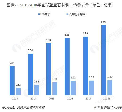 具體需求量來(lái)看,根據前瞻產(chǎn)業(yè)研究院的保守測算,2017年,全球LED藍寶石需求量約為4.99億米,2018年預計達5.97億米;非LED應用主要體現在消費電子產(chǎn)品需求上,2017年消費電子產(chǎn)品藍寶石需求量約為1.25億米,2018年預計達1.29億米。