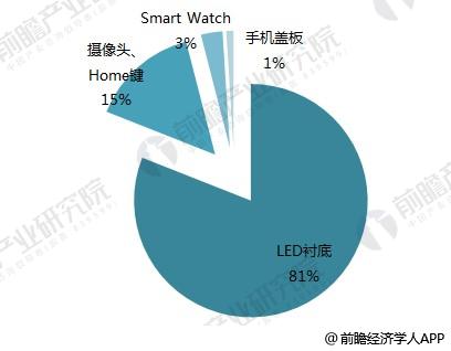 從藍寶石下游應用來(lái)看,整體集中于LED襯底和可穿戴設備:用于LED襯底、手機的Home鍵和攝像頭、Smart Watch的蓋板、手機蓋板的比例分別為:81%、15%、3%和1%。