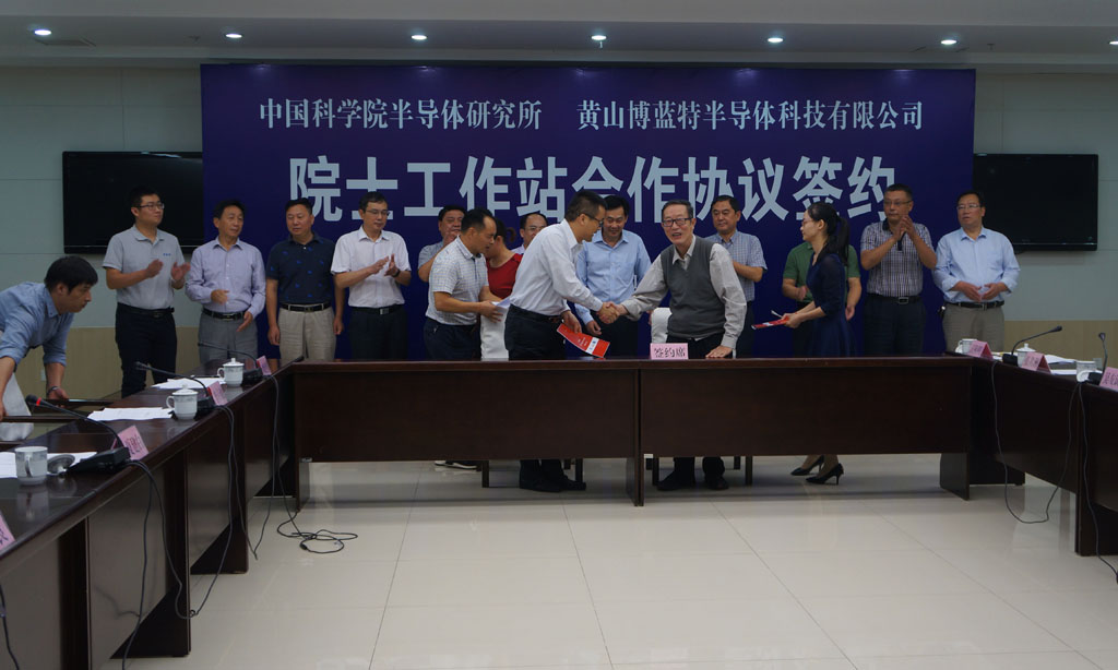 2017年9月21日,博藍特集團旗下子公司黃山博藍特半導體科技有限公司與中國科學(xué)院半導體研究所夏建白院士及其研究團隊在黃山隆重舉行院士工作站合作簽約儀式,這也是安徽省成立的首家中科院院士工作站。出席儀式的有中國科學(xué)院半導體研究所夏建白院士、李京波研究員,黃山市徐德書(shū)副市長(cháng)、屯溪區委胡黎明書(shū)記以及博藍特集團董事長(cháng)徐良先生、副總經(jīng)理劉建哲等。